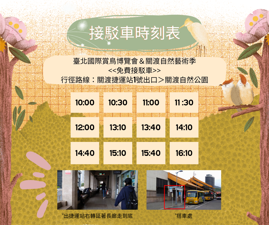 關渡捷運站出口至「關渡自然公園」下車
