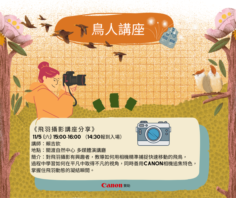 常常看到鳥友們分享和交流去各地玩所拍下的各式飛羽影像,臉上的神情充滿驚奇、興奮和滿足感,與人分享時,彷彿又重溫一次當初的賞鳥時光,手刀報名,技能Level Up!!!!