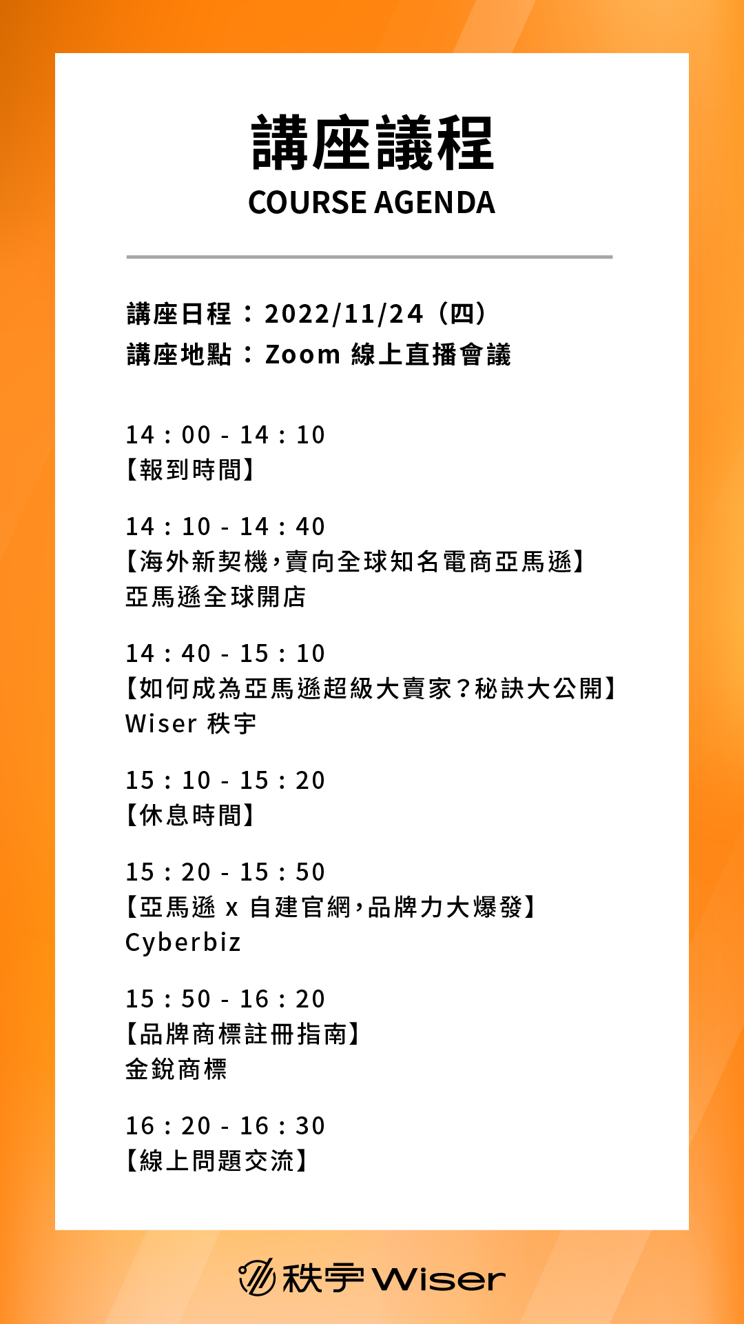⚠️ 報名完成後,官方團隊將在活動日期兩天前以電子郵件通知您活動細節,再請賣家留意!