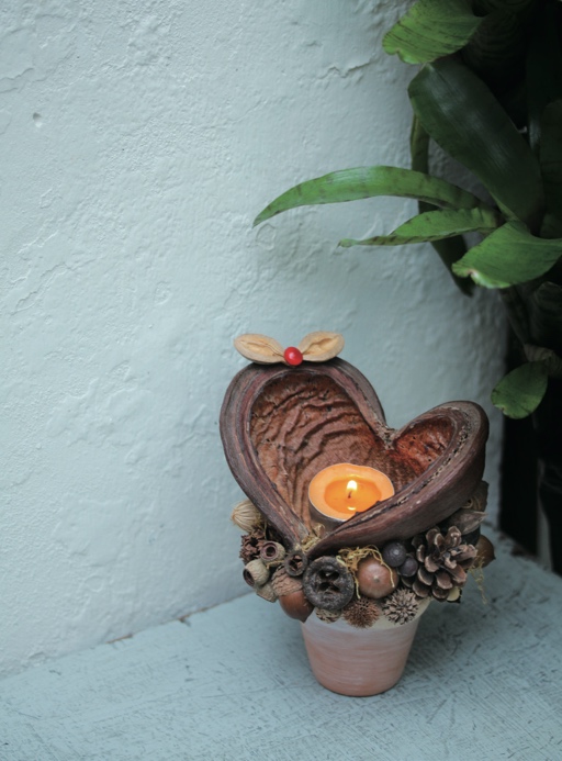 ▼示範四、點亮暖洋洋的心——掌葉蘋婆盆栽燭台