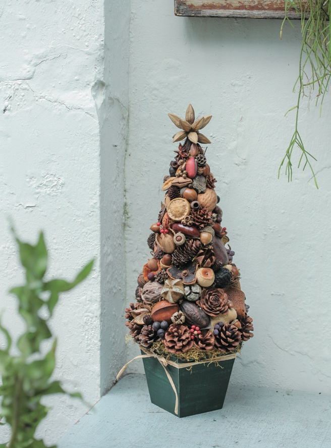 ▼示範三、堆疊豐盛的美好——滿滿果實聖誕樹盆栽
