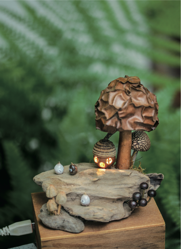 ▼示範五、菇菇森林的小屋—百香菇下的橡實小屋燈飾