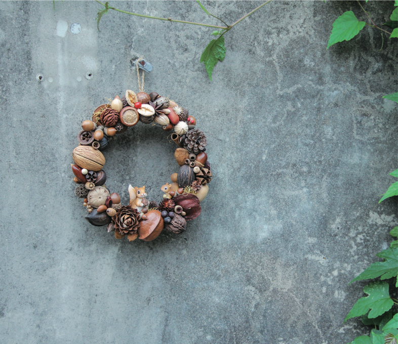 ▼示範一、松鼠們的甜甜圈—滿滿果實圈掛飾