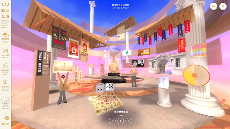 「VR環景展間」則以720度環景拍攝技術,將國史館自館外建築周遭的街景開始,一直到館內的一樓、二樓各個展間區塊,無縫式影像處理,並且在館內的各個區域與展覽區塊,均設有介紹與說明,讓民眾從線上即可享受遊走在館內的導覽服務;「展覽回顧」將館內所有曾經辦理過的展覽,妥善歸檔於此,即使線下的實體展結束了,但線上展出卻可24小時不打烊,持續典藏於此,讓民眾隨時點選瀏覽好好回味;最後,「影音探索」則是將館內所有曾經出版(或絕版)、未出版的經典影音資源,如:DVD、紀錄片、典藏影音等上架於此,讓民眾可從平臺中,進一步搜尋影音資源與觀看。以上的功能項目,為了能讓服務更無遠弗屆,線上所有提供的內容均有中、英文雙語呈現,給予對臺灣的總統副總統文物及重大歷史事件研究,有興趣的國外訪客或學術單位能有更多元且便利的使用服務。