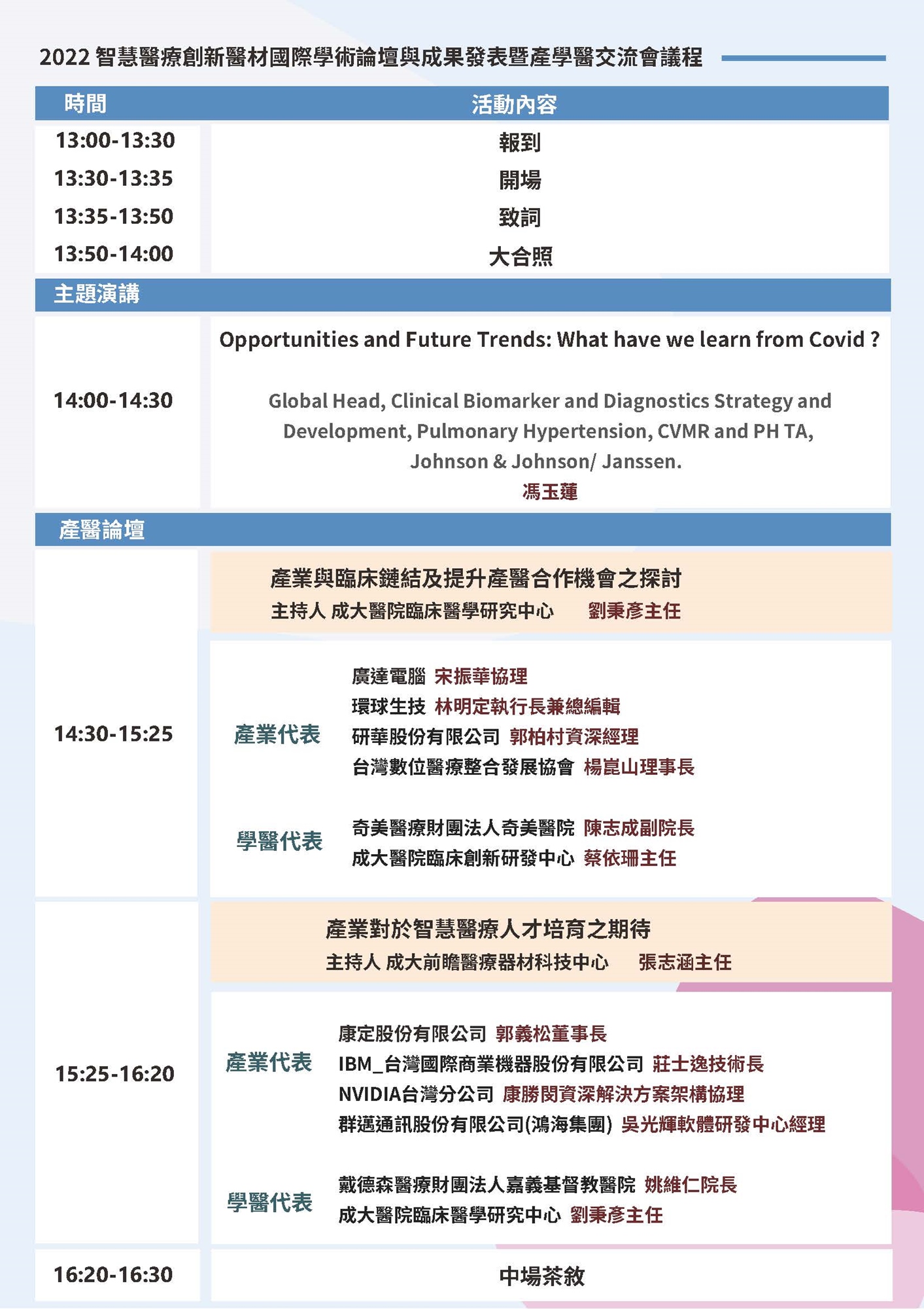 會議名稱:2022智慧醫療創新醫材國際學術論壇與成果發表暨產學醫交流會