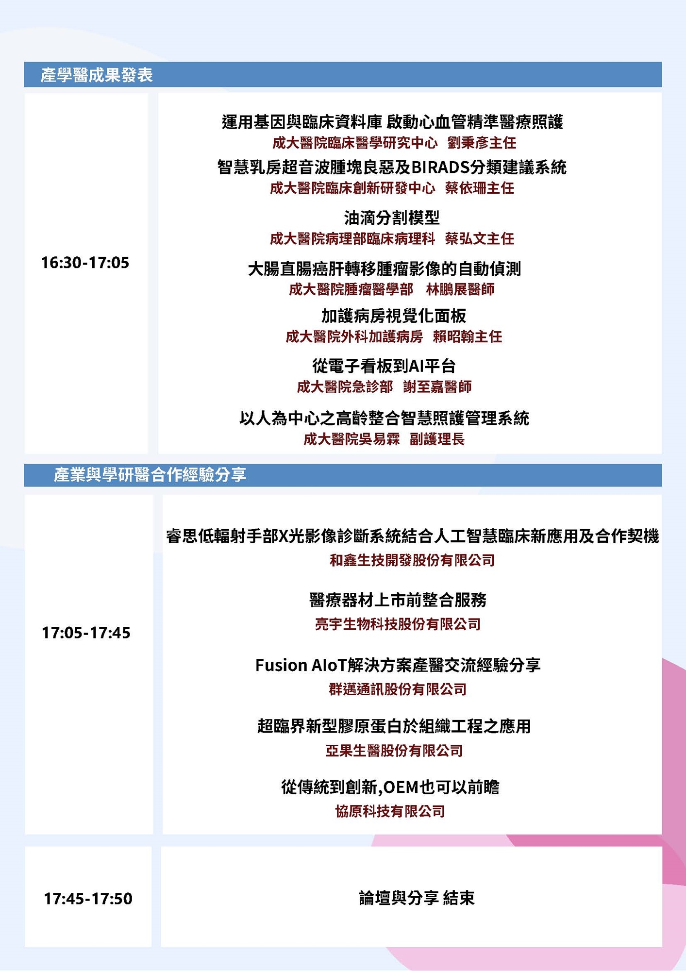 主辦單位:成功大學前瞻醫療器材科技中心、成大醫院臨床創新研發中心