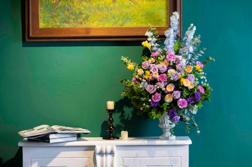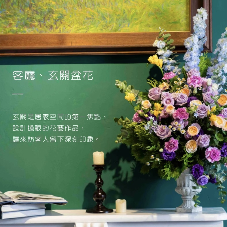 玄關及客廳是居家空間的第一焦點,擺放設計感較搶眼的花藝作品,就能讓賓客留下深刻印象。