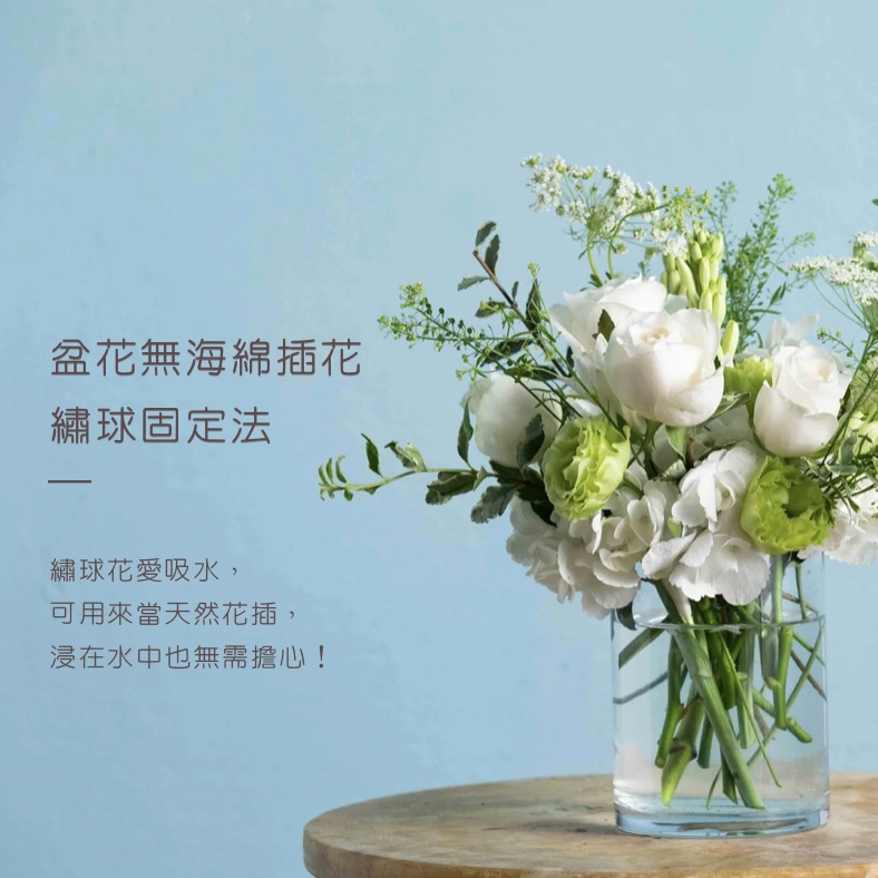 不用大費周章處理花藝海綿,繡球花也可以當作天然花插,因為天生愛吃水,浸泡在水中也不用擔心!