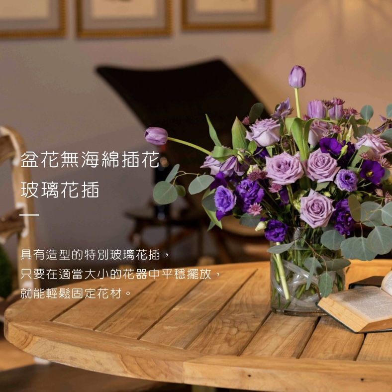 具有造型的特別玻璃花插,只要在適當大小的花器中平穩擺放,就能輕鬆固定花材。