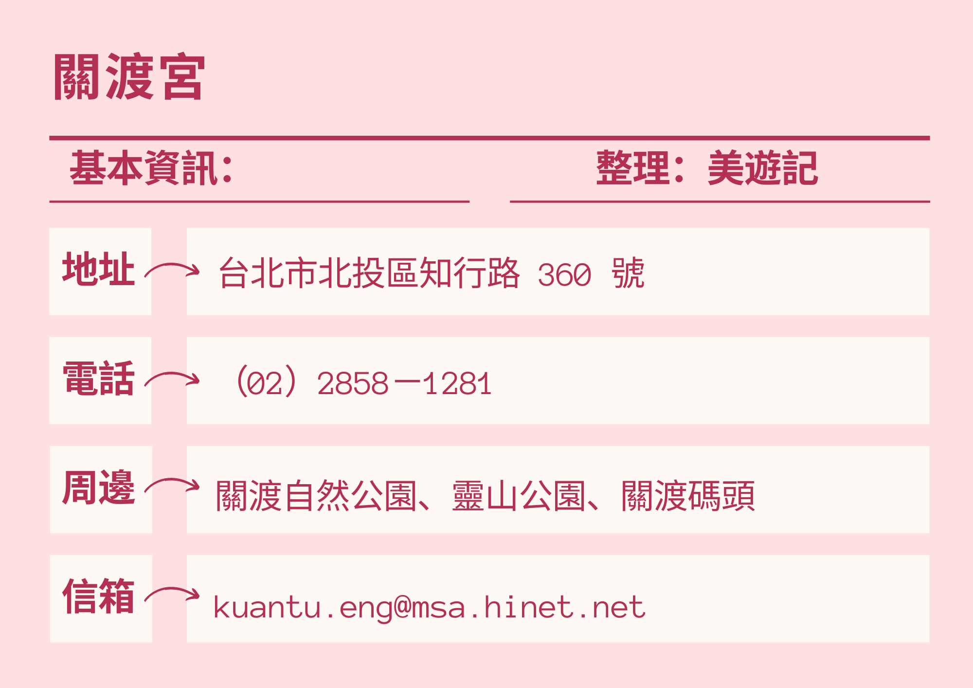 📌集合地點:關渡宮(三川殿前),地址:台北市北投區知行路360號,準時出發,逾時不候。