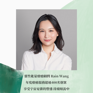 我們都想要過上更好的人生!靈魂來到此世,對於「體驗」的追求充滿熱情,那你現在的人生過得如何呢?曾經困在負向能量中的Rain,受到了宇宙的眷顧,透過靈性能量暢通,除了身體健康,長年疾病康復外,也找到了自己真心喜愛的生活方式,每一天都在創造新的體驗。
