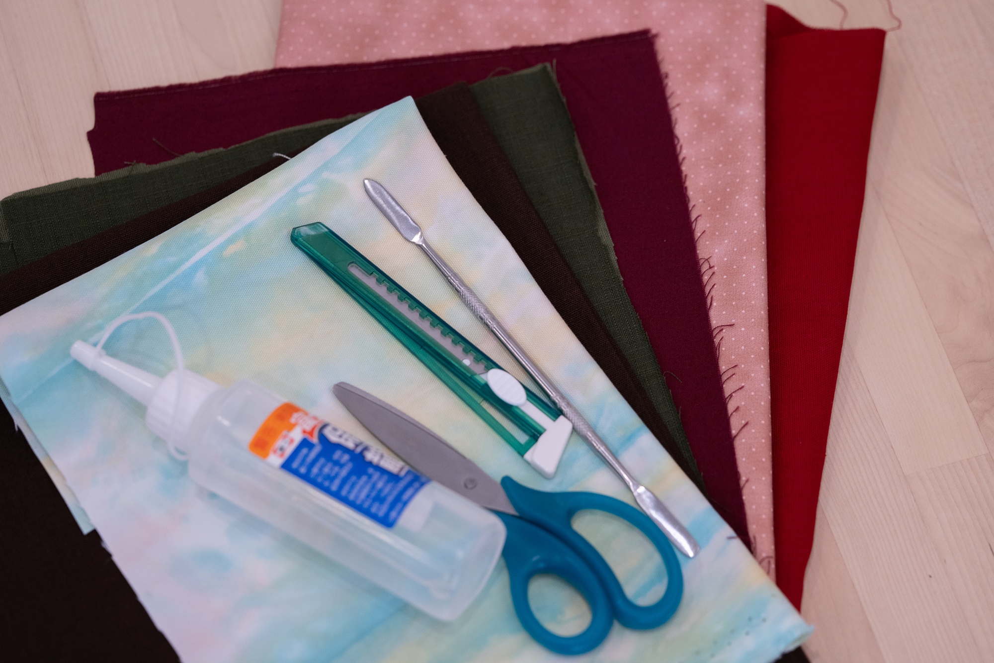 2. 在材料包裡選出自己想要的布料,挑選喜歡的布料