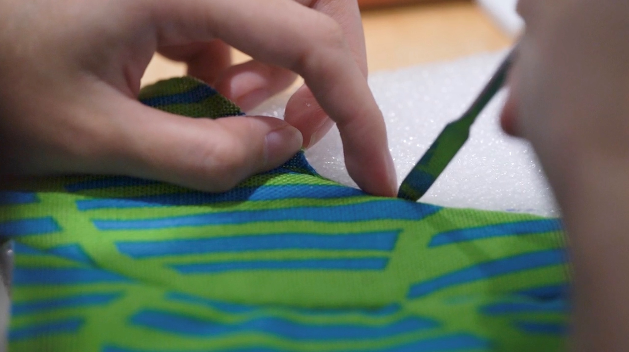 4. 開始用工具戳戳戳,把布塞進溝槽裡~