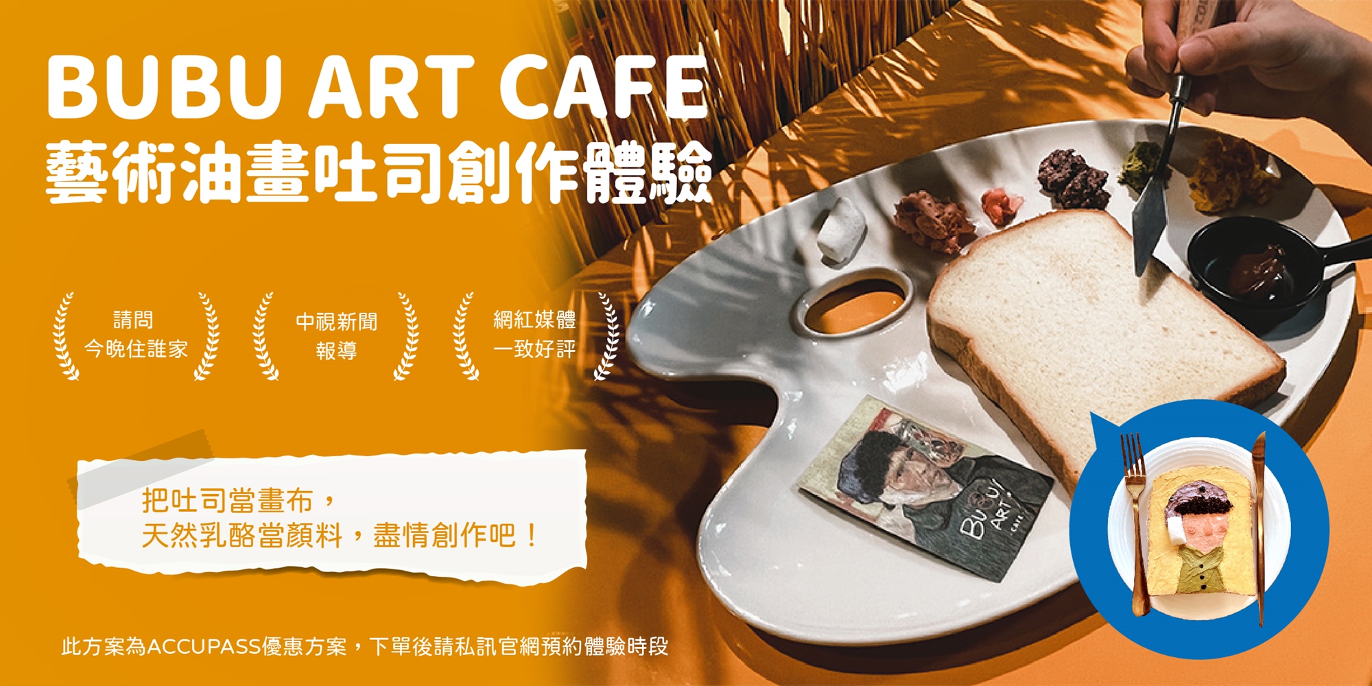 ⭔體驗內容包含|此方案包含2份完成的油畫吐司,以及2份空白吐司、材料進行創作,顧客可依照喜好選擇自己喜歡的款式。(選擇的款式和提供的材料會是一樣的組合)