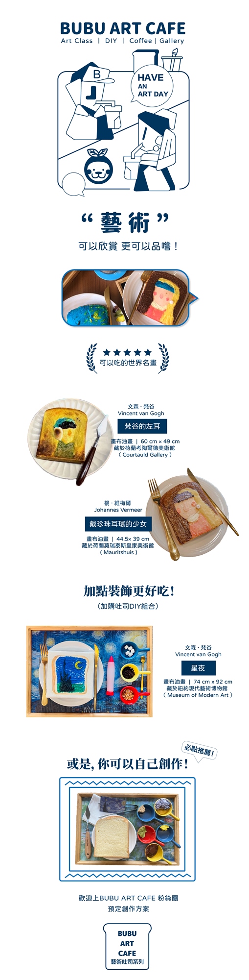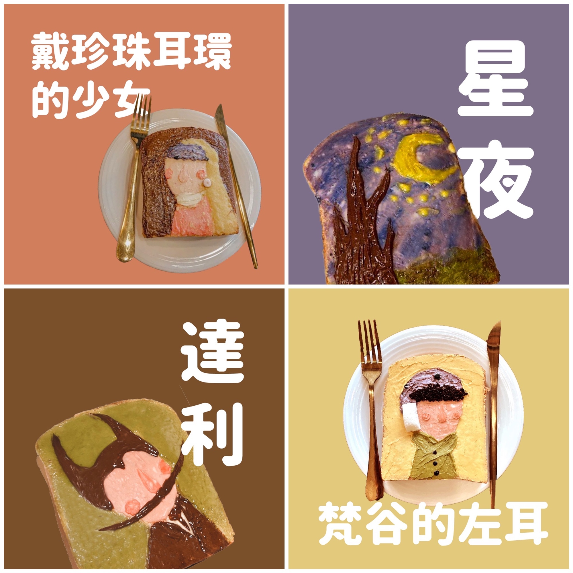 ⭓款式選項|目前提供四種創作款式組合,分別為「梵谷的左耳」、「星夜」、「戴珍珠耳環的少女」(草屯店限定)、「達利」(台中店限定)。