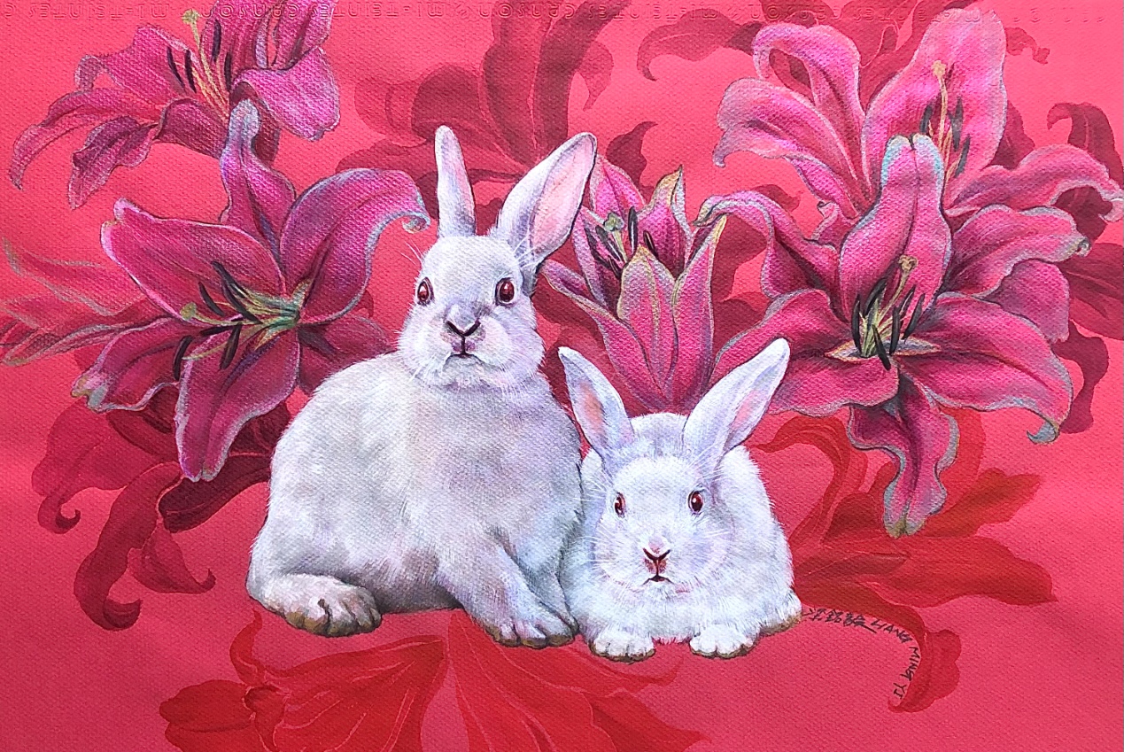 ©梁銘毅〈鴻兔大展〉/ 38cm*55cm 金屬色水彩‧顏色鉛筆 / 2022