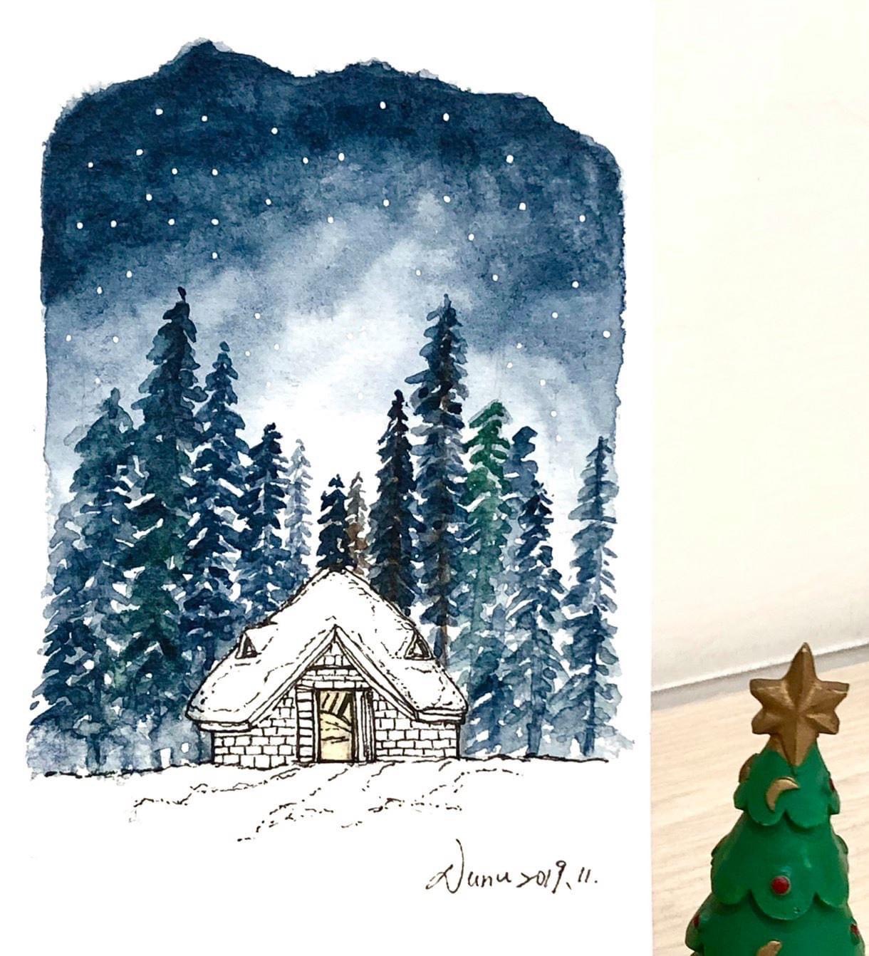 水彩速寫初體驗🌟冬日聖誕小屋🌟