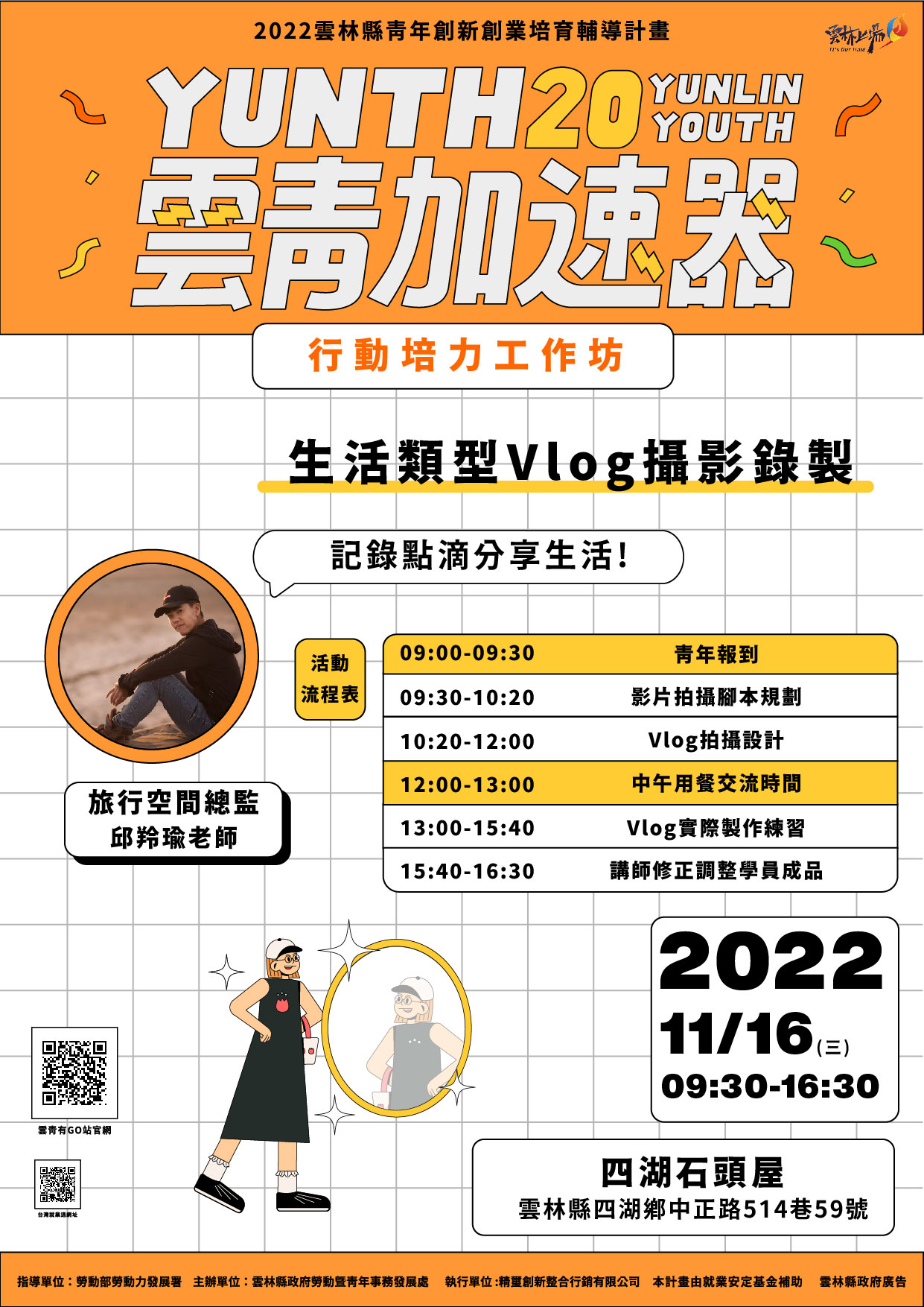 生活影片部落格,也稱為「影像網路紀錄檔」,英文從Blog而來變體稱為Vlog。隨著短影片的盛行,在社群平台上,短影片的宣傳效果是更吸引消費者的。影片風格百百種,其中生活Vlog,也已從記錄生活的拍片形式,漸漸變成行銷食衣住行育樂的影片。記錄生活人人都會,但要怎麼拍出一部能夠抓住觀眾眼球的影片、如何設計劇本架構就會是多數人會面臨到的難題。因此這堂課要告訴大家「如何善用你的手機拍攝生活Vlog」。