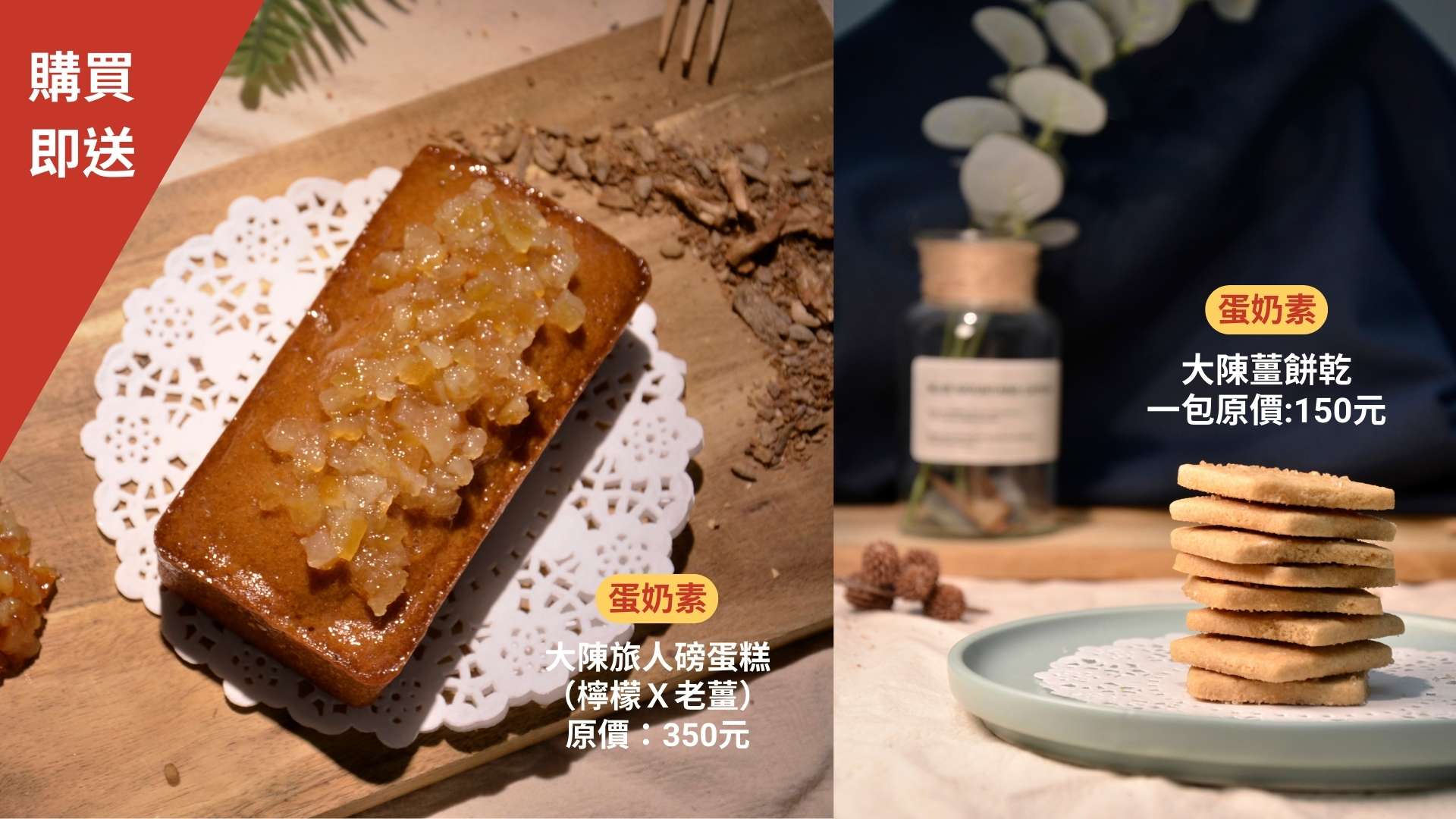 本次演出特別與花蓮款款烘焙及邊境法式點心合作,融入大陳人節慶飲食「薑」的元素推出「大陳旅人檸檬磅蛋糕」與「大陳薑餅乾」,甜甜辣辣不只暖了各位秋冬的心,也暖和了觀眾的胃,有興趣的民眾歡迎把握入村機會,2022年一場你不能錯過的秋季聲音劇場漫遊之旅。