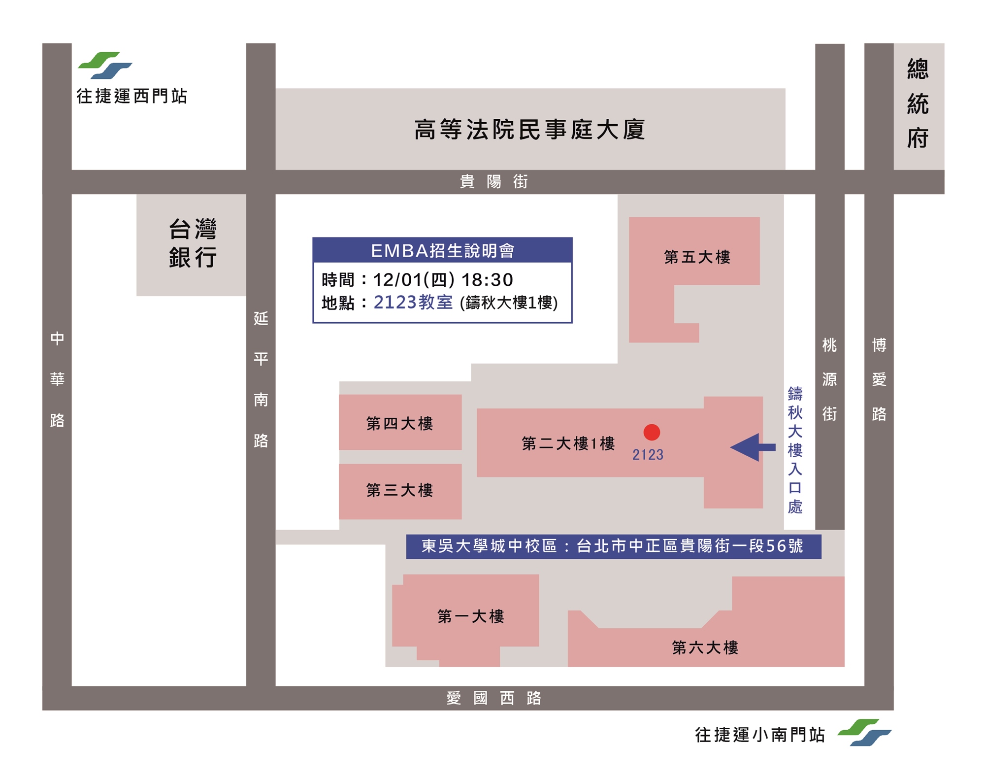 112學年度東吳EMBA招生說明會將於12/1(四)在東吳大學城中校區鑄秋大樓2123會議室舉辦。