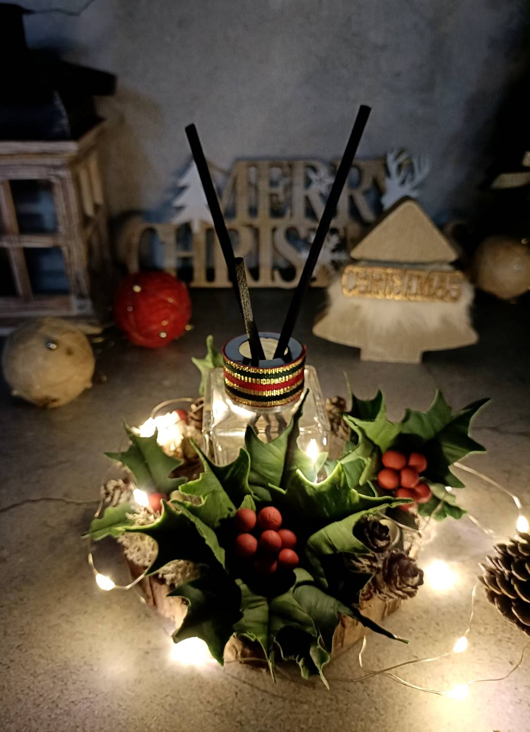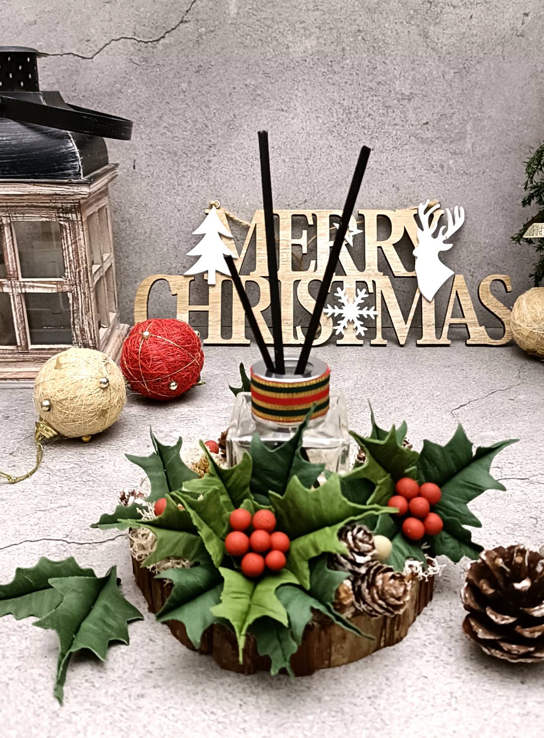可愛的紅色果實和冬青葉本身就是擴香石,滴上幾滴精油搭配擴香竹簡直不要太香😆😆😆,讓單調的擴香瓶立馬充滿濃濃的耶誕氣息~🥰
