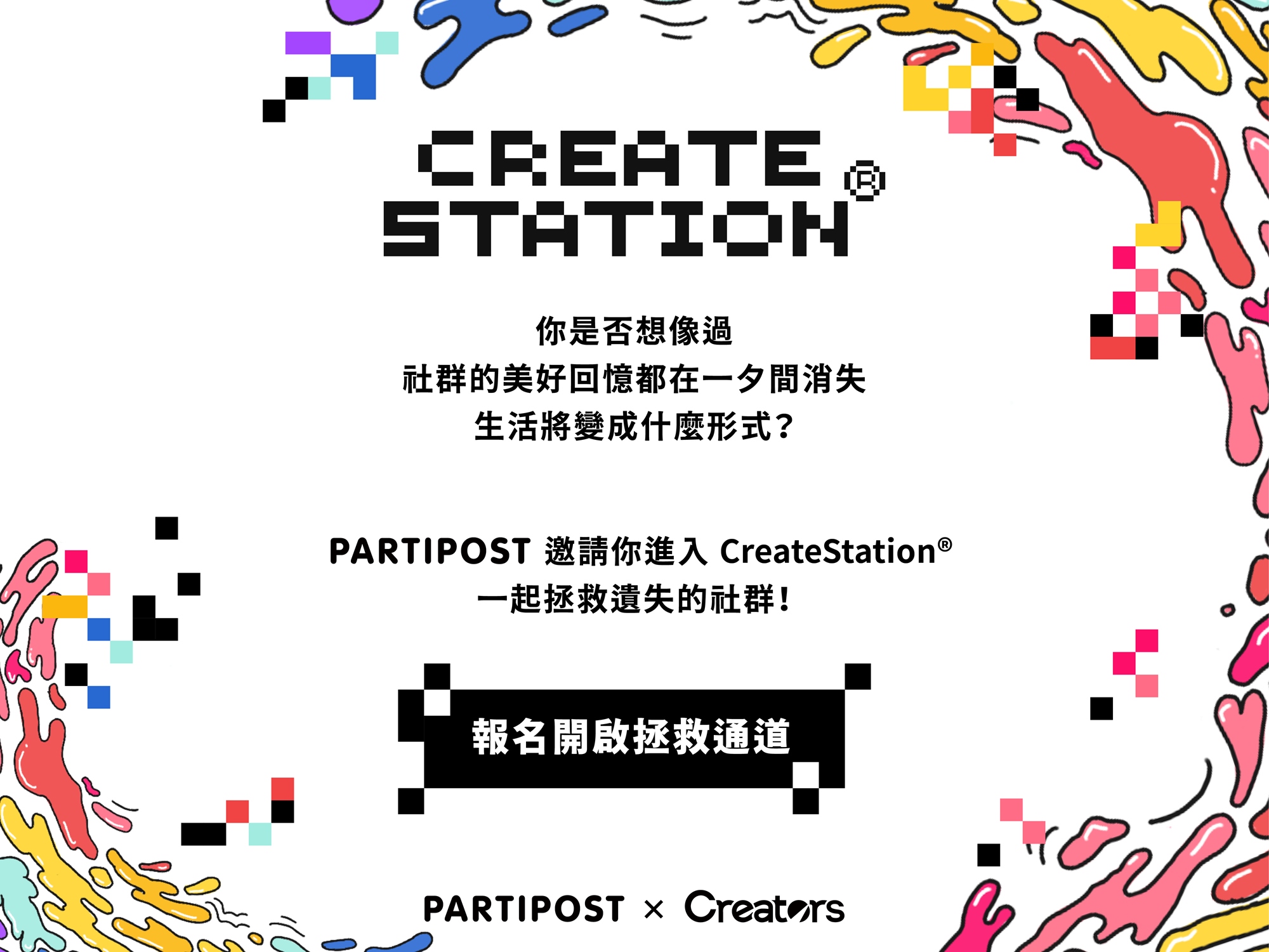 你是否想像過,社群上的美好回憶邦在一夕間消失,生活將變成什麼形式?Partipost 邀請你進入 Createstation®,報名開啟入場通道,一起拯救遺失的社群!