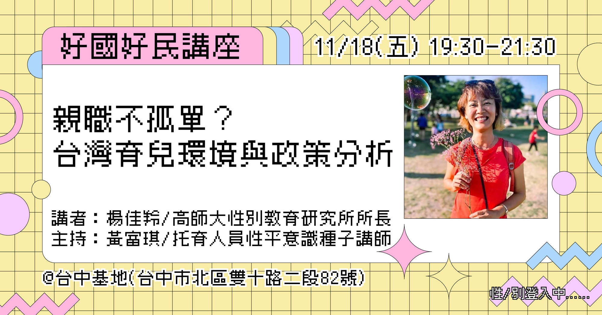 【好國好民講座】11/18 親職不孤單? 台灣育兒環境與政策分析
