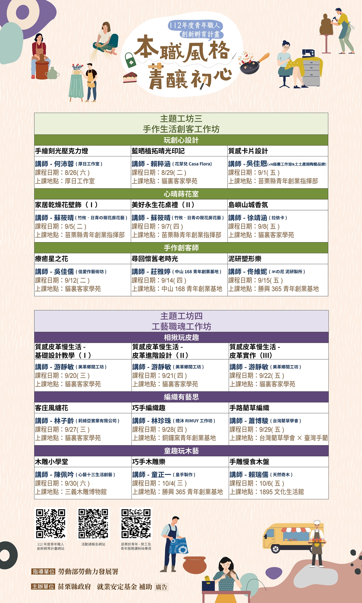 「112年青年職人創新孵育工作坊」課程與報名須知