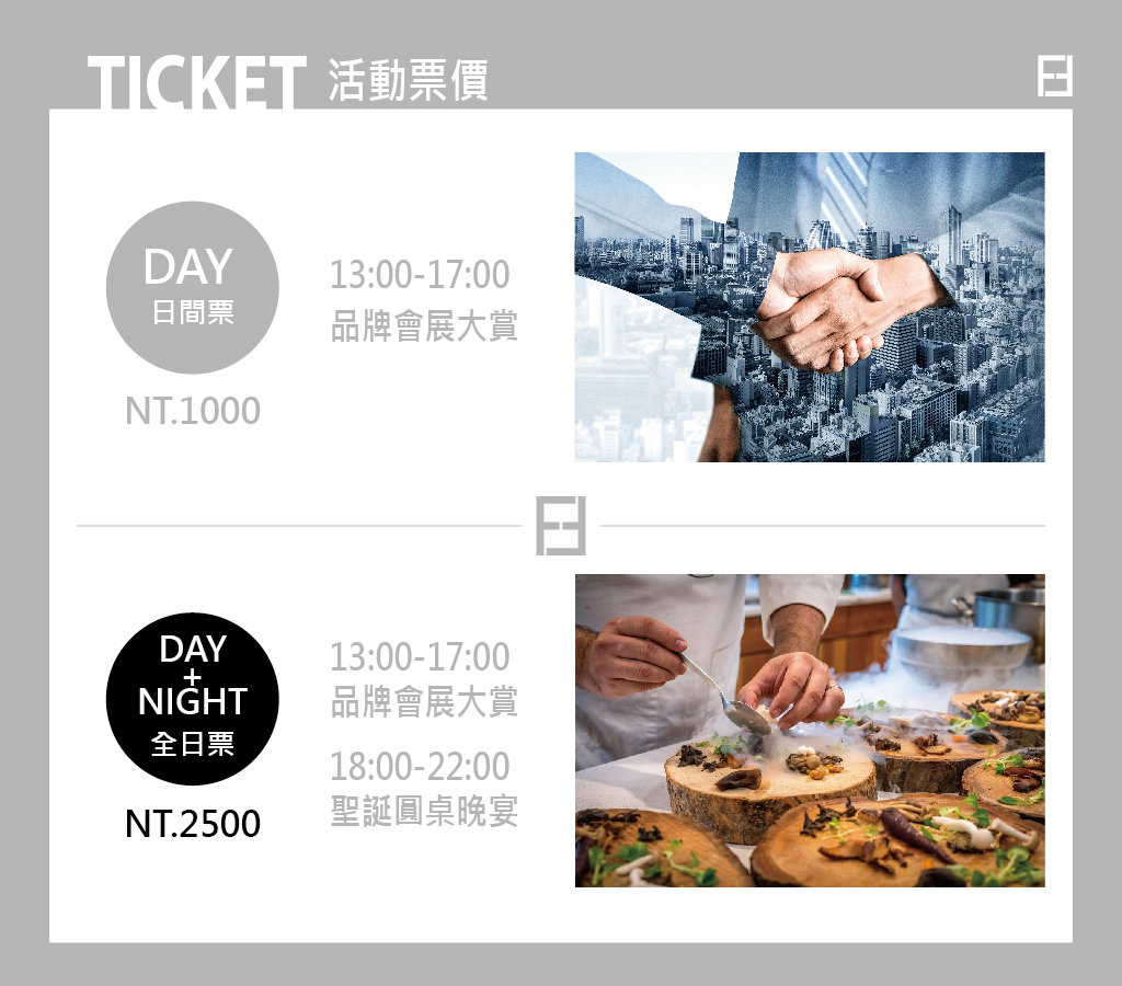 |活動票價:日間票(品牌會展大賞)NT1,000、全日票NT2,500(大賞+晚宴)