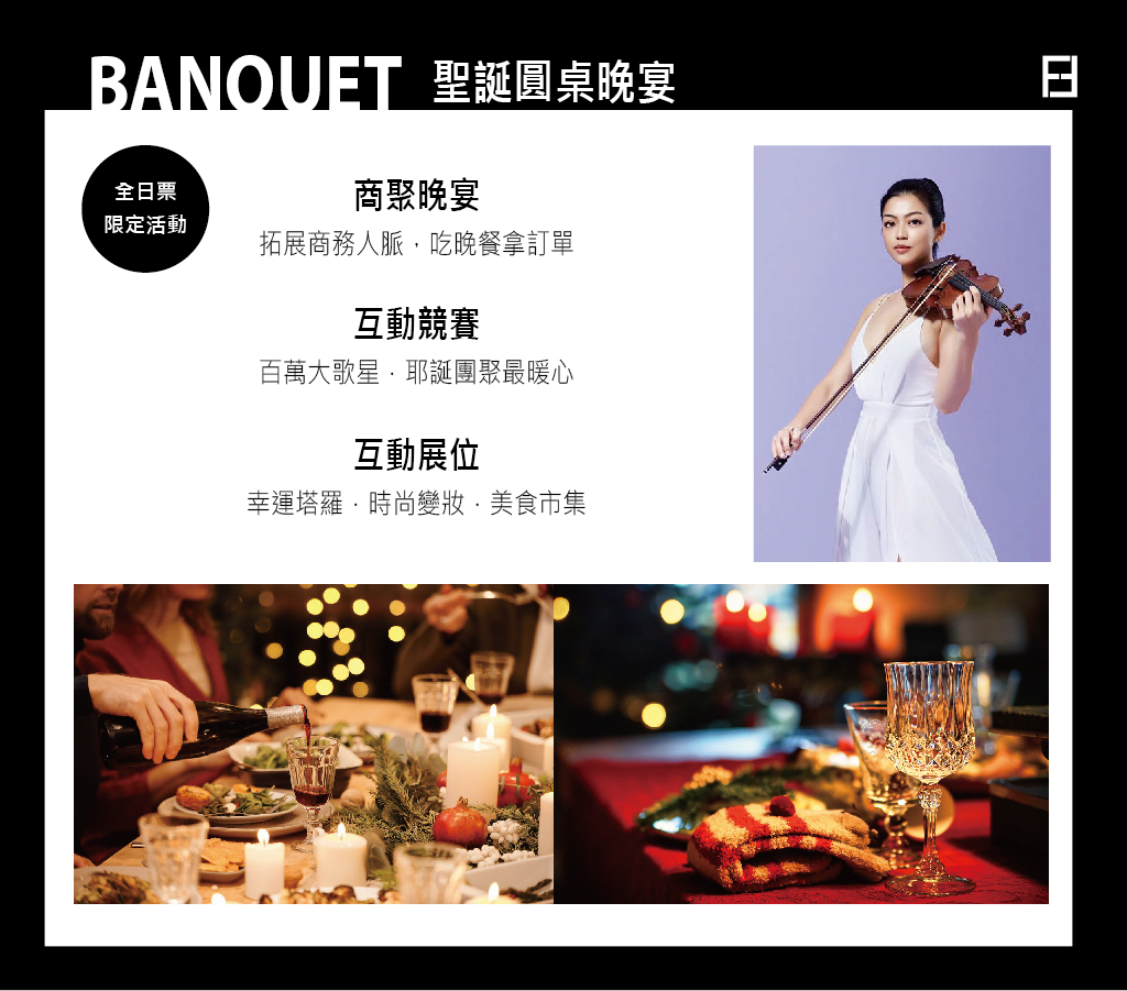 |活動時間:13:00-17:00品牌會展大賞、18:00-22:00聖誕圓桌晚宴