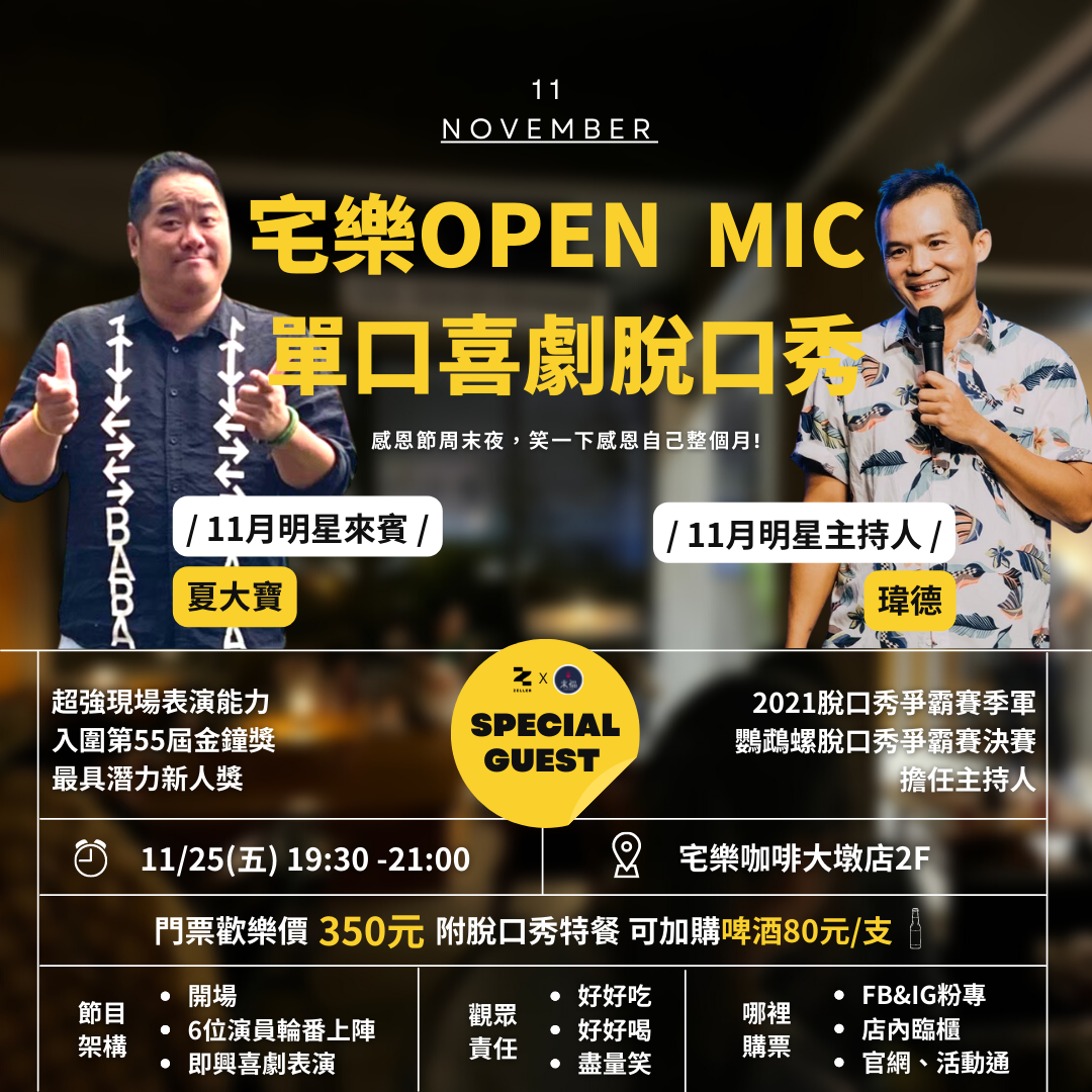 不管你是喜歡脫口秀或好奇脫口秀,都期待當天一起來同樂喔~