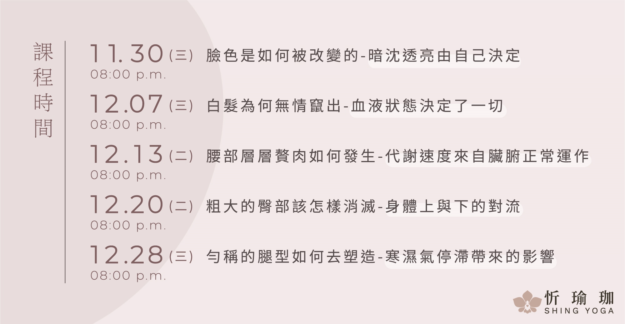 ——我們將從中醫醫理角度出發,給你五堂主題課!