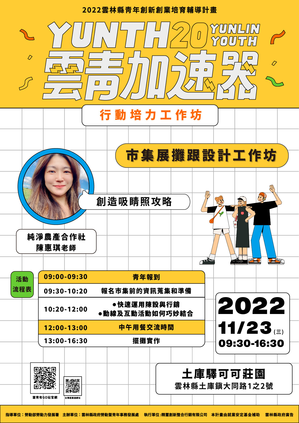 本次小聚「市集展攤跟設計的工作坊」,邀請了純淨農產合作社發起人-陳惠琪老師。惠琪老師擅長建立農品牌、銷售模式、包裝、行銷;以農企業市場營銷顧問的角度,協助學員釐清辦理市集前中後的所需工作,希望可以協助學員能夠更有效的掌握市集所能帶來的的資源及效益。