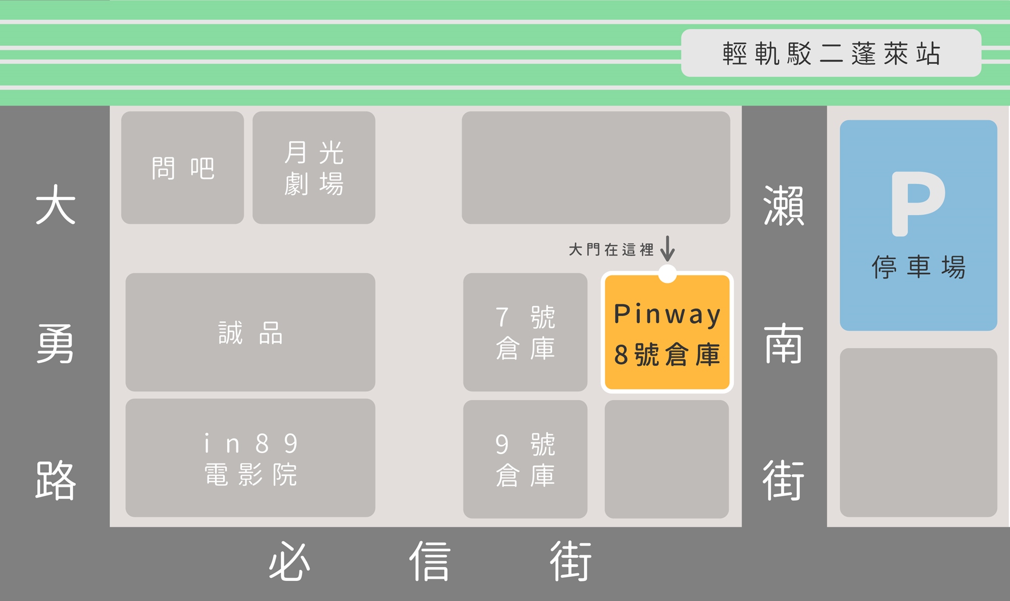 * 地點:高雄市鹽埕區瀨南街8號2F(駁二8號倉庫 Pinway 青創講堂)