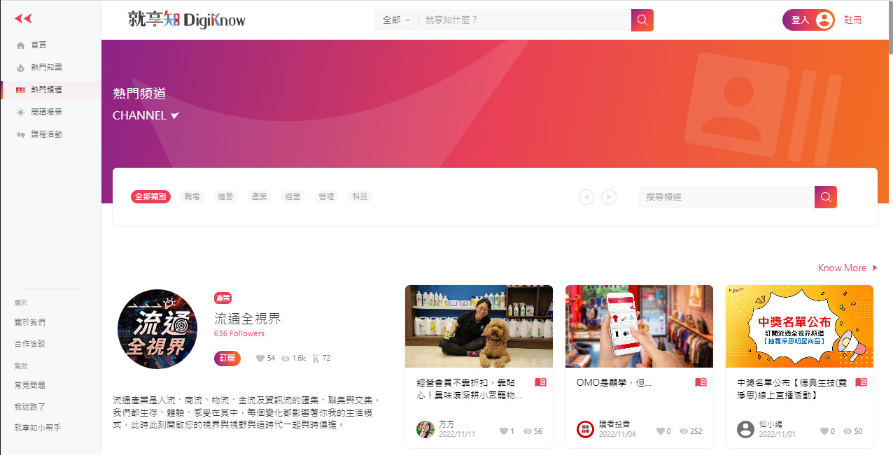 其中,流通全視界頻道,帶您掌握零售、電商、餐飲、觀光及金物流…等流通產業的全知識頻道!