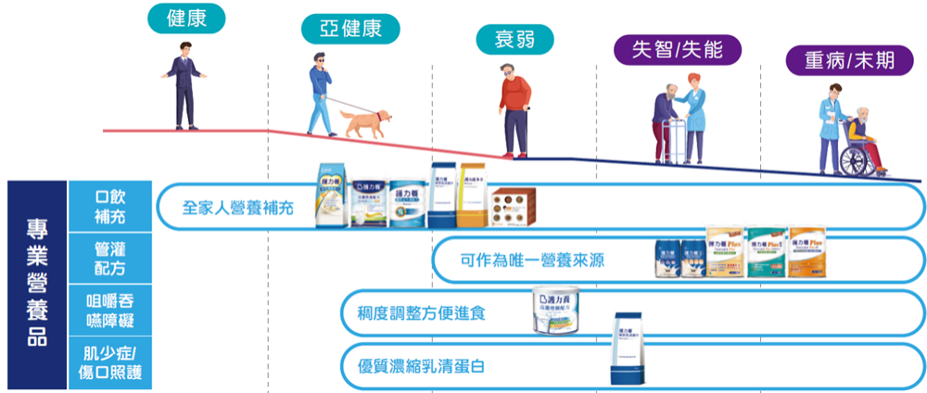 全方位營養照護處方,全台超過700家長照機構首選營養品品牌,承襲醫療院所照護經驗,多年來致力於研發適合國人長期與居家照護的營養品,並且跳脫營養品永遠高價的框架,創造最放心、安心、甘心的品牌。