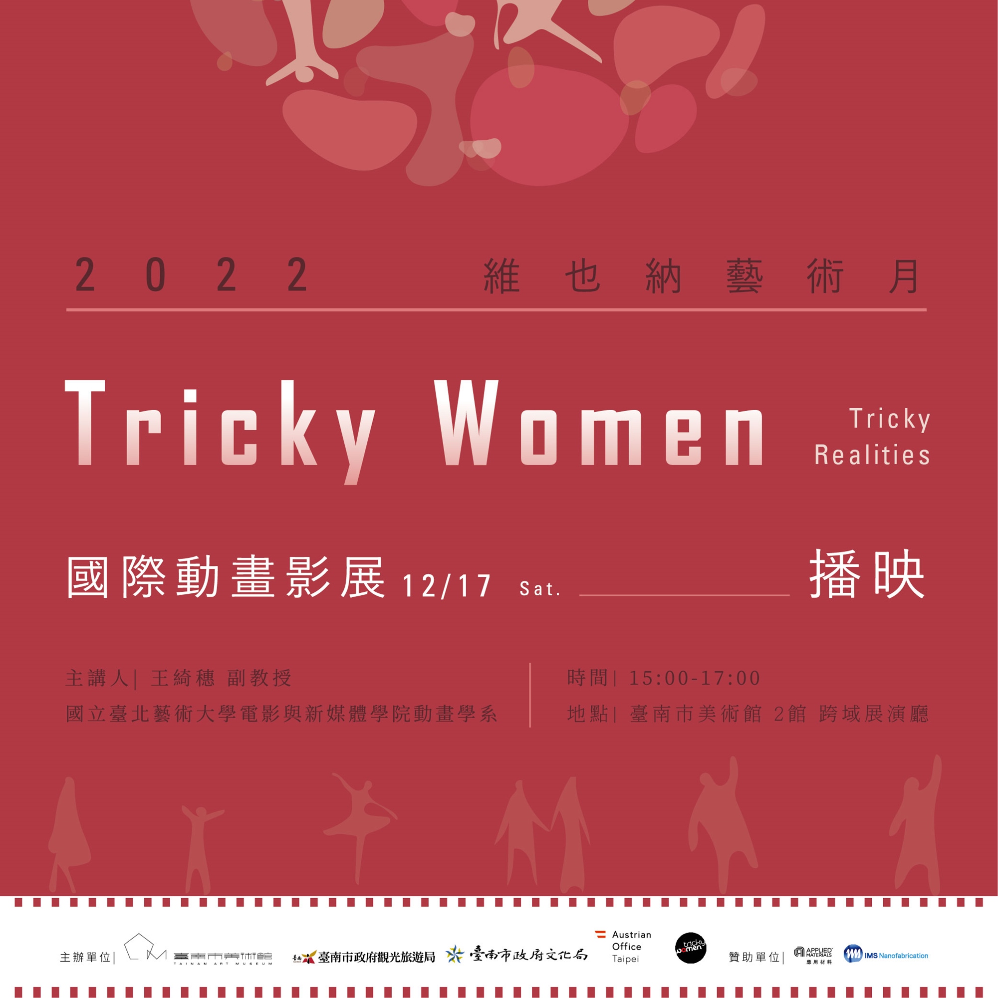- 簡介|此次特別由奧地利台北辦事處協助授權申請,選定奧地利Tricky Women/ Tricky Realities國際動畫影展單元影片為播映主題,該影展起始於2001年,有別於一般影展特別聚焦女性專題影展,歷來致力於女性議題在各類產業領域的權力地位表述,瞭解女性觀點對世界的看法,透過不同單元主題的影片放映,同時呈現女性多元且獨特的視角。值得注意的是,呼應本館當期展覽「SHERO:臺灣當代女性藝術展」,期許藉由女性相關議題的關注與提問,將觀眾的視角從大銀幕延伸至展間裡。會中特別邀請國立臺北藝術大學電影與新媒體學院動畫學系 王綺穗副教授蒞臨講授,除了播映前導引言,王副教授亦將於映後擔任座談會主持,將帶領觀眾以更為專業而學術的角度深入剖析。