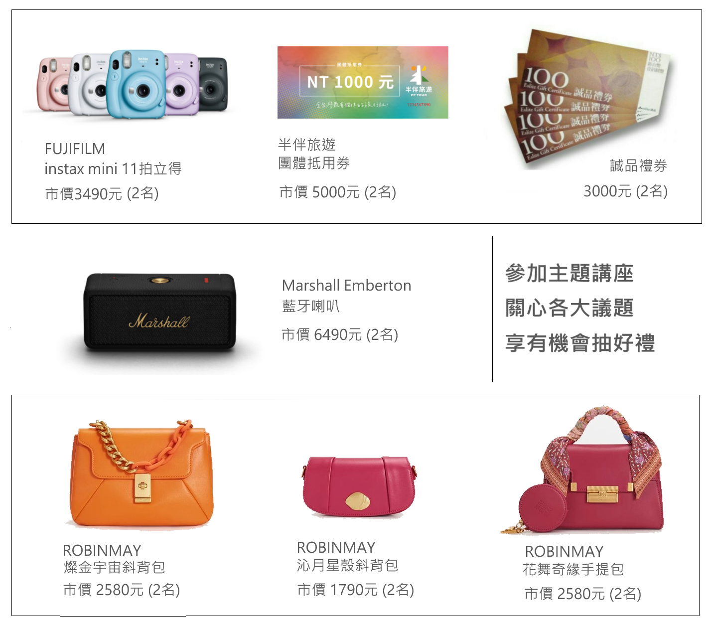 - 完成現場報到程序並完整參與本場講座,即可參與抽獎活動!