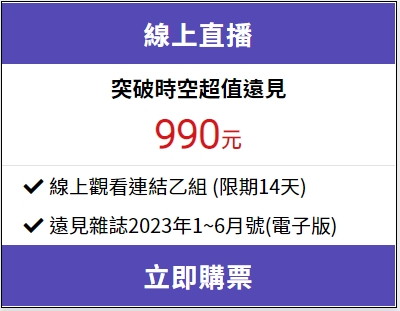 ◎本直播活動串接之第三方影音平台資源,部分國家(如中國、北韓等)可能因管制部分媒體服務,造成網站無法正常運作,請審慎評估是否購買。