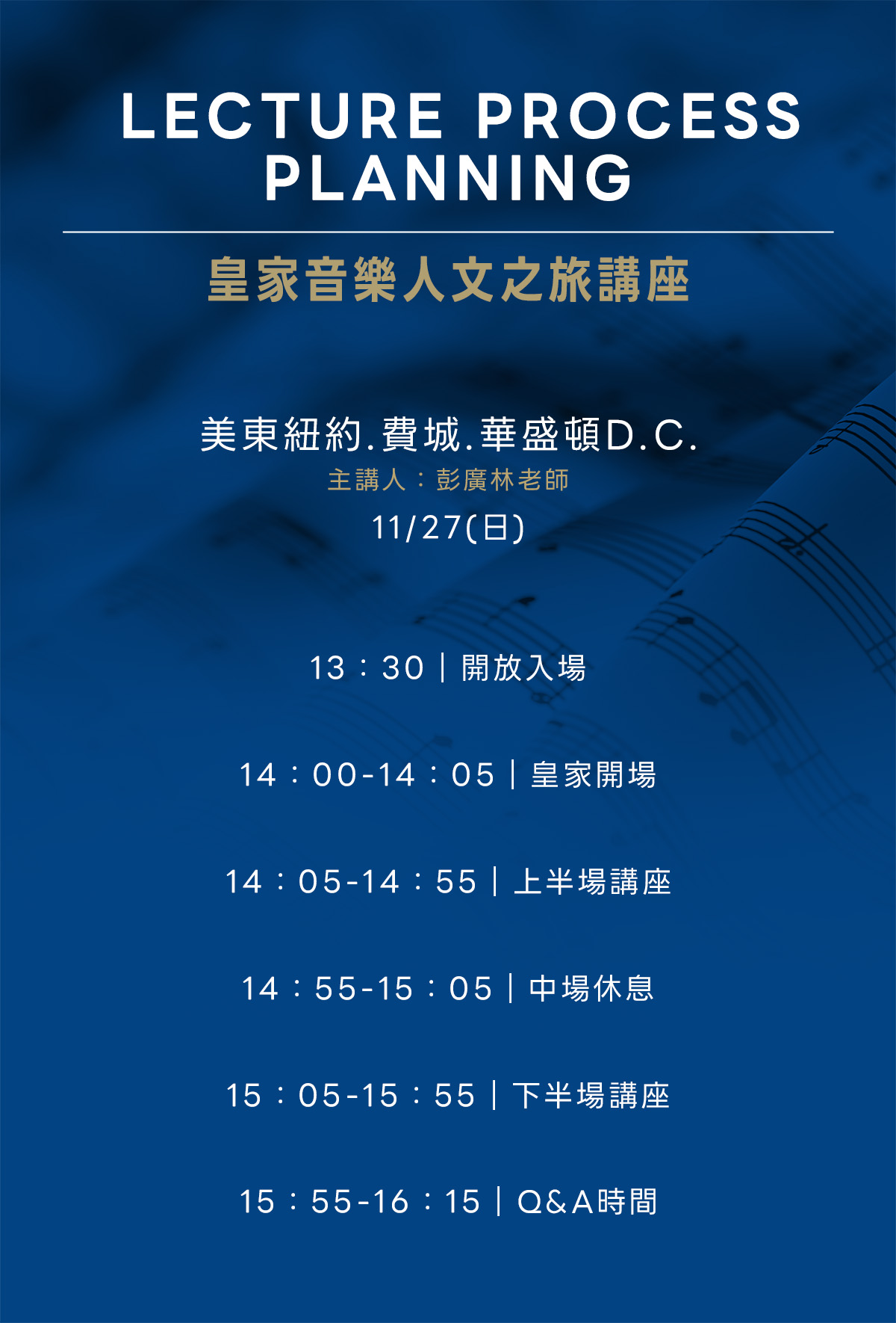下午13:30開放入場,14:00講座開始,詳細流程請見下方圖表說明