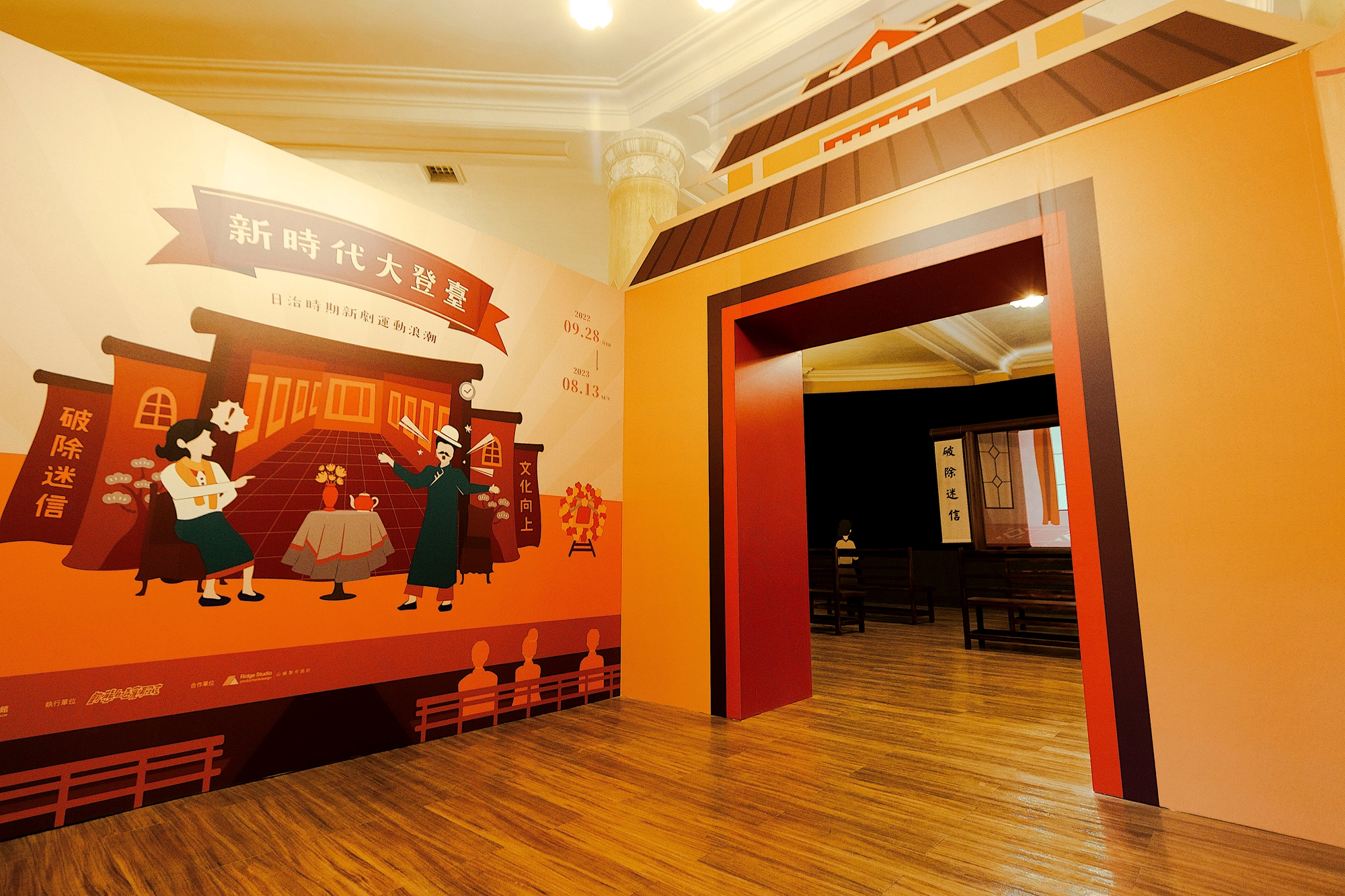 日治時期戲劇在十九世紀末受到來自西方的文藝思潮與近代社會文明影響,開始展開新式戲劇的嘗試。這種稱為「新劇」的新式戲劇,由臺灣留學生從日本、中國引介至臺灣,是相對於傳統戲曲「舊劇」而生的名詞。因此,為了表現新劇的「登臺演出」及「登陸臺灣」的雙重意涵,本展覽命名為「新時代大登臺」。