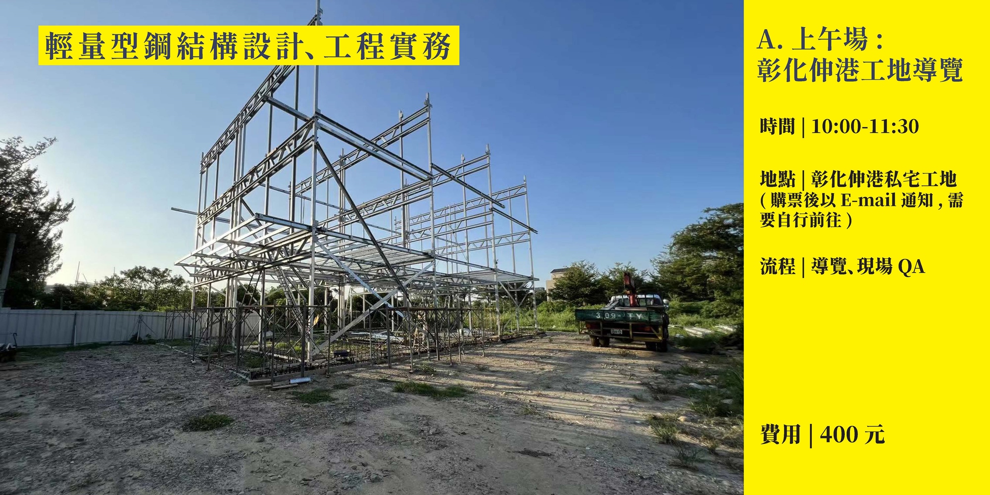 全天活動將會細談常民鋼構多年來在實踐過程中的內容,包含: 類統包策略、單線圖設計、結構計算、建照都審流程、鋼構生產、鋼結構吊裝、防火樓板施作等。