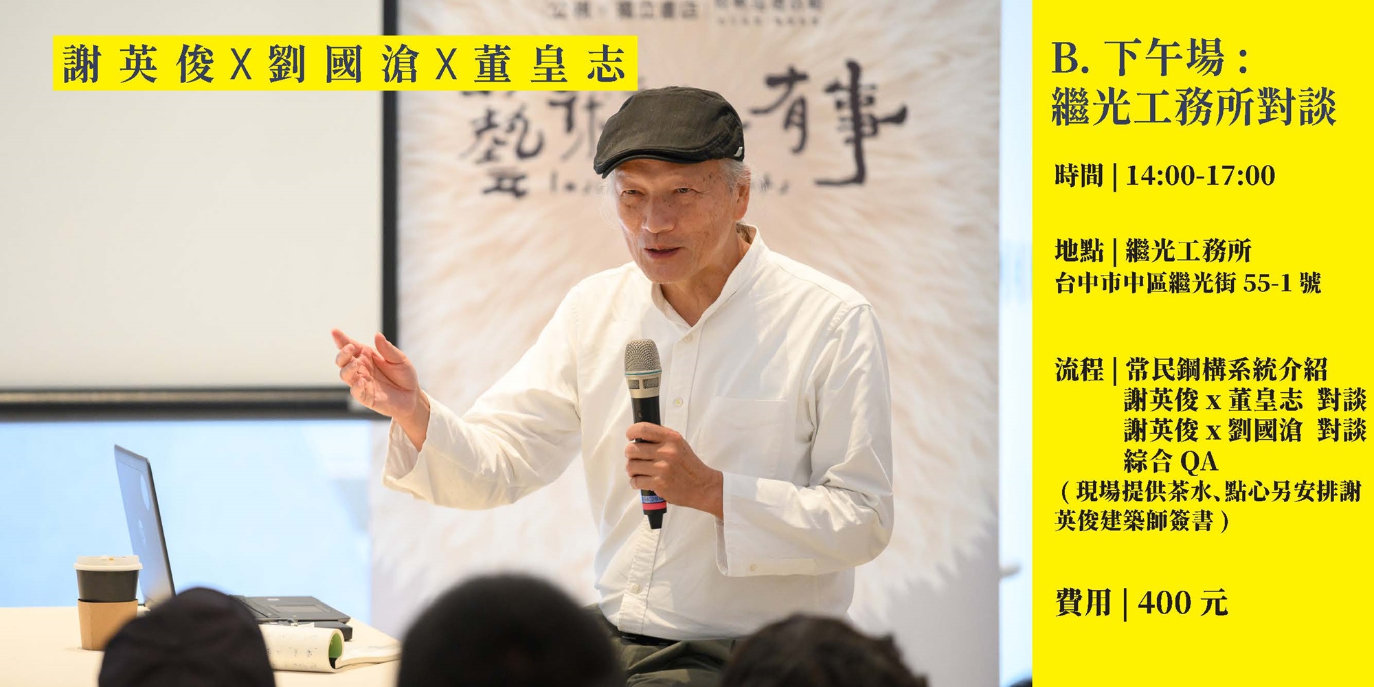 下午場於繼光工務所舉辦對談,邀請謝英俊、劉國滄、董皇志針對國內外輕量型鋼結構系統脈絡與常民輕鋼的實踐,進行對談及開放現場提問。