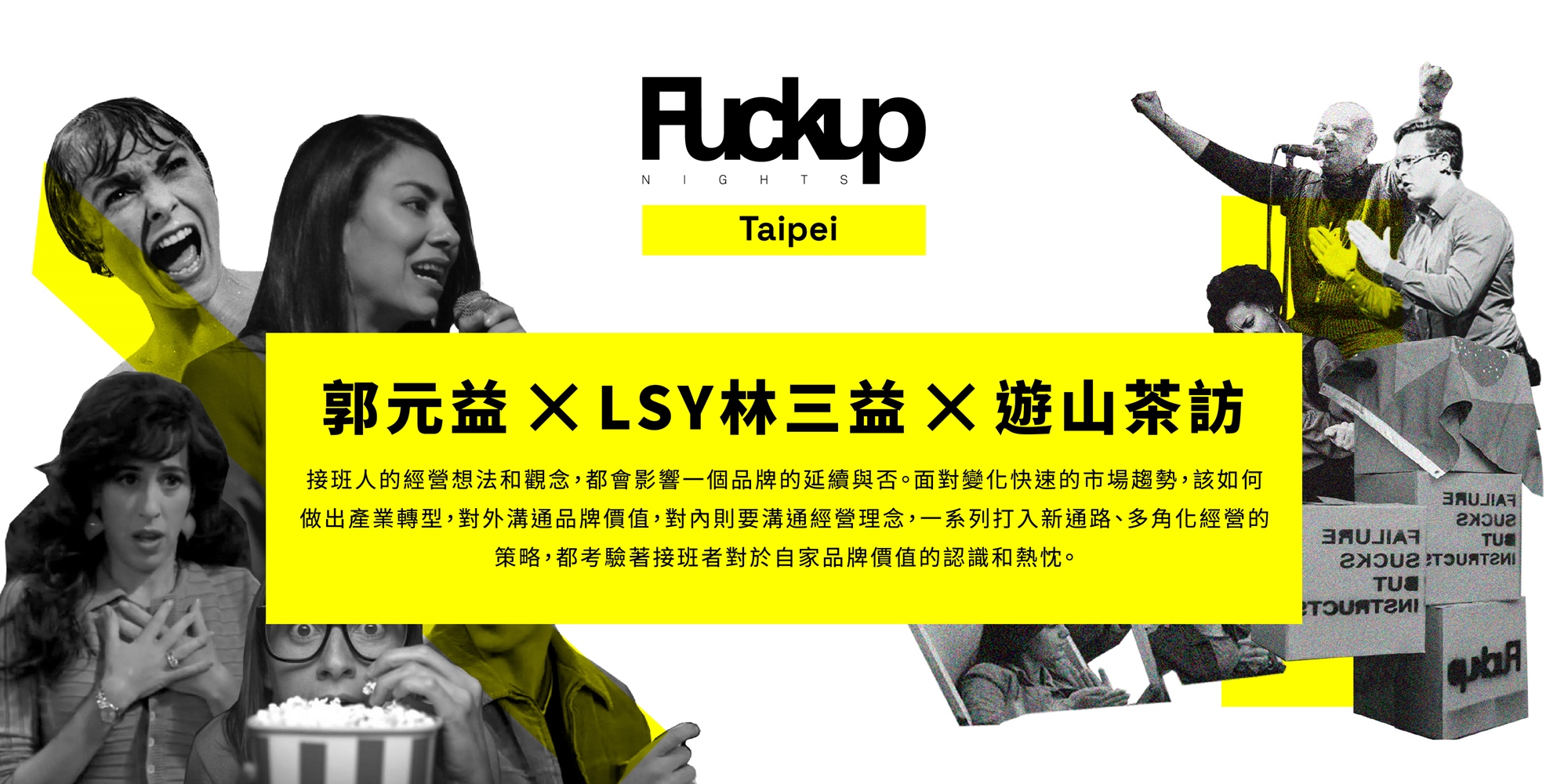 FuckUp Nights / 搞砸之夜,2012年起源於墨西哥,是個國際串連的講座品牌,是個分享、訴說與慶祝失敗的平台,我們認為「成功實屬偶然,失敗卻為常態」,活動進行中搭配啤酒,透過正面、詼諧的方式,告訴大家勿忘前車之鑑,並從中學習,同時洗刷「失敗」兩字長期以來污名化的現象。