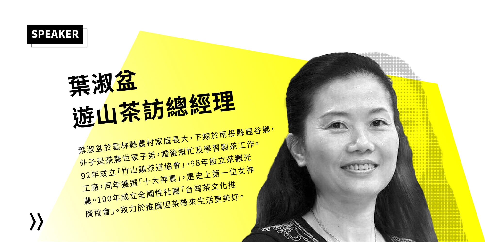 是史上第一位女神農。100年成立全國性社團「台灣茶文化推廣協會」。致力於推廣因茶帶來生活更美好。