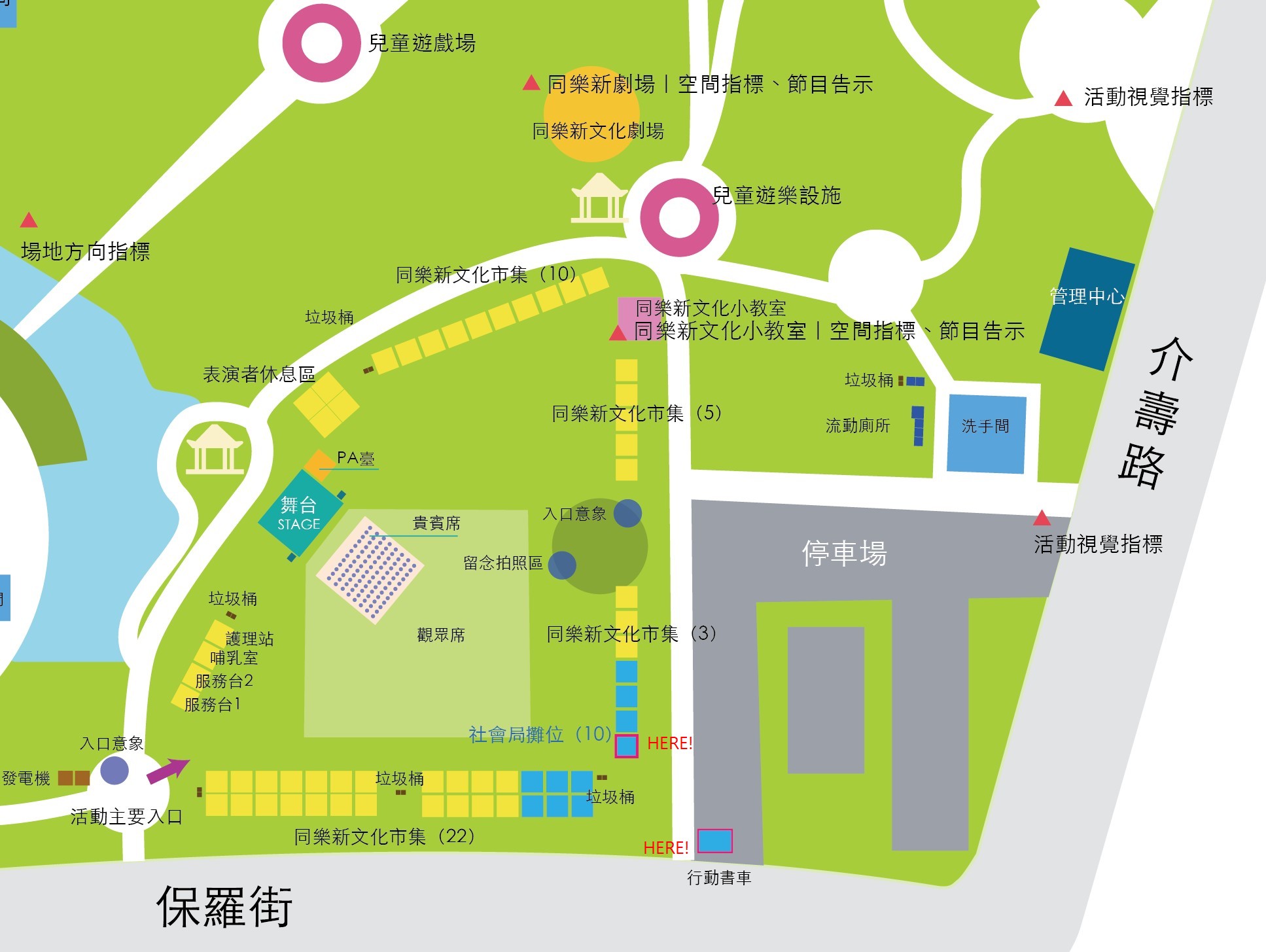 ※ 紅色框框位置為【勵馨移住者服務中心】攤位,快來找我們玩吧!