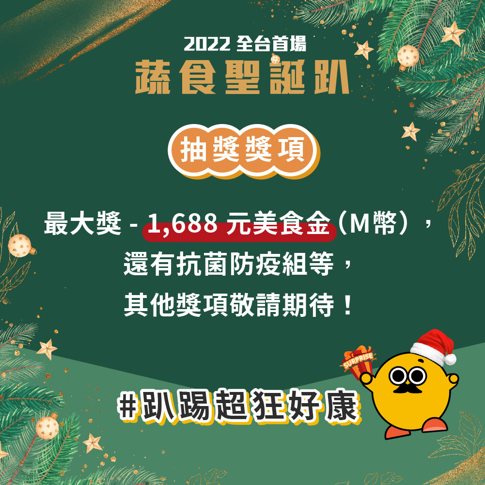 【抽獎獎項】:最大獎:1,688 元美食金(M幣),還有抗菌防疫組、抗菌隨身包、抗菌口罩、抗菌零錢包等等,其他獎項敬請期待