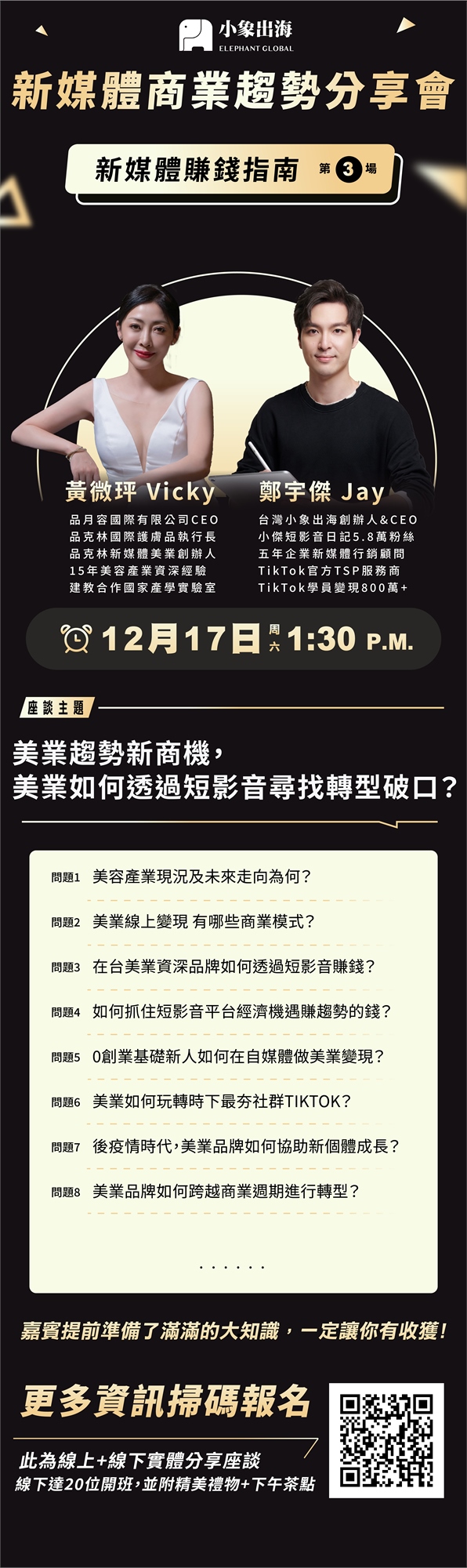 13:30-13:35 | 開場 | 品克林x小象出海 品牌介紹 |