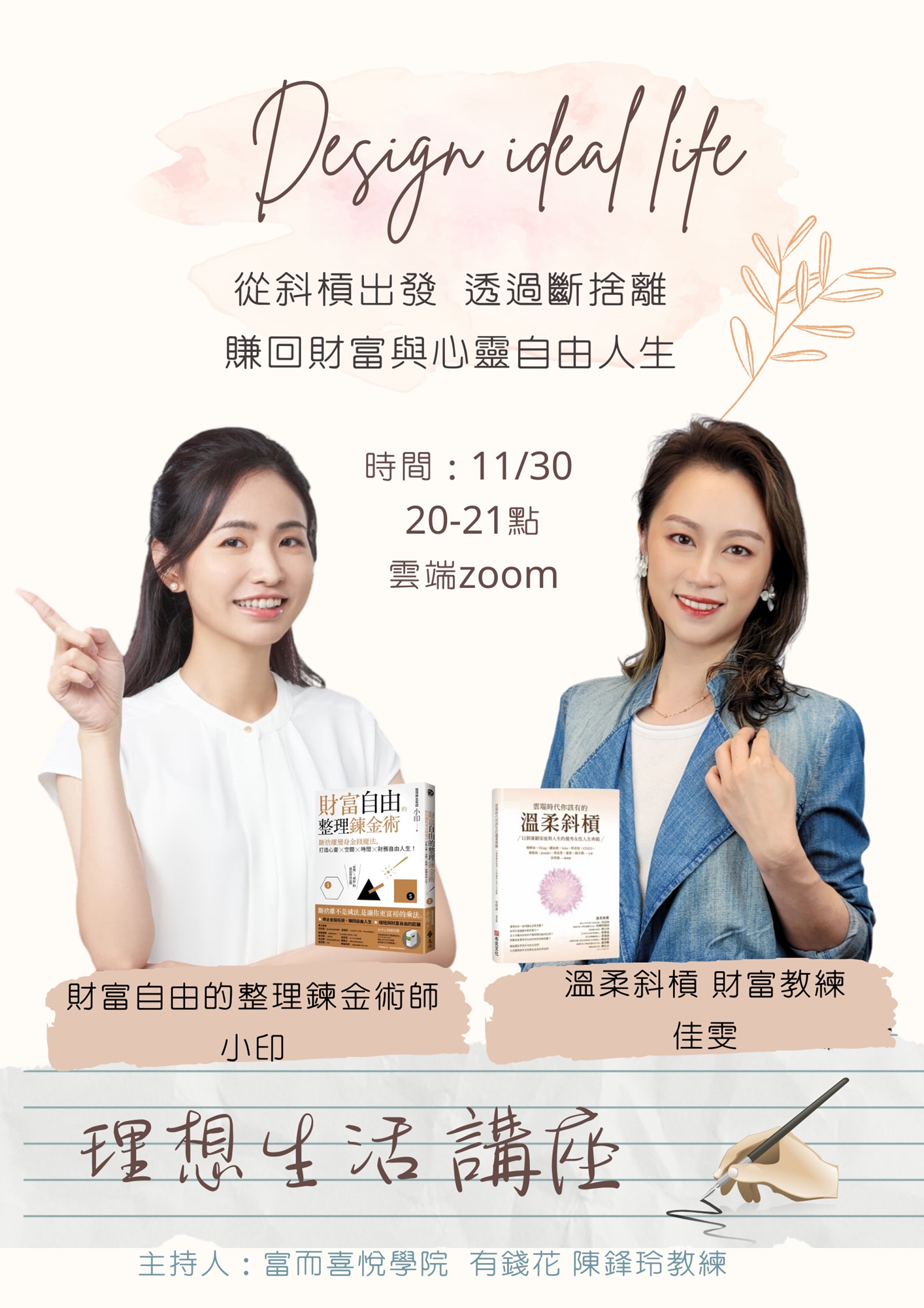 《財富自由的整理鍊金術》作者小印和《雲端時代你該有的溫柔斜槓》作者財富流百萬明星教練佳雯