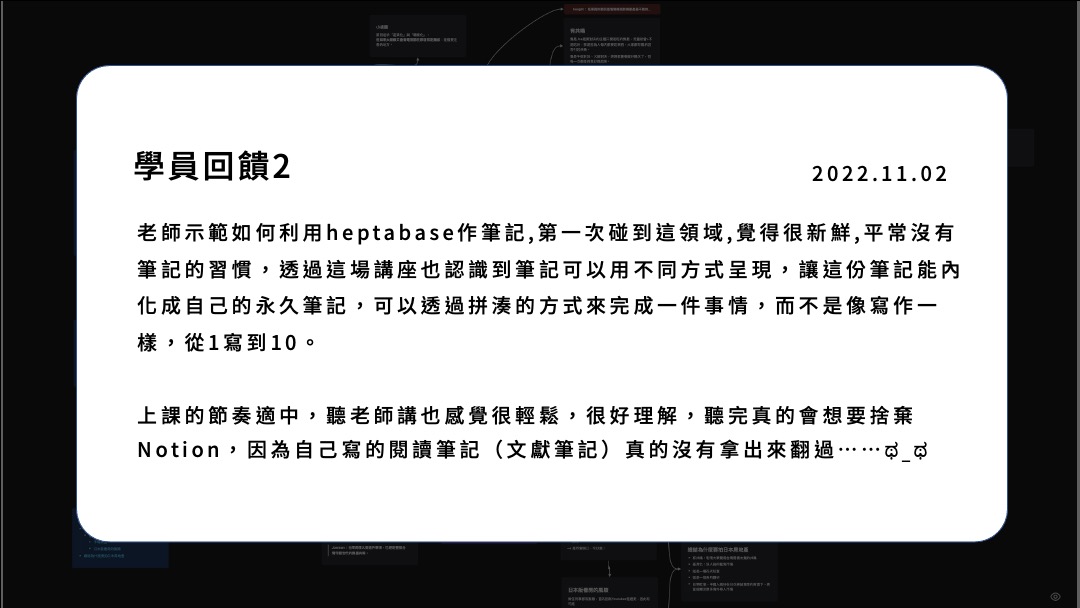 註:Heptabase需付費才能使用,因此學員不需準備,我會示範如何做出下圖筆記。
